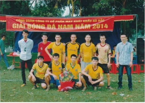 Giải bóng đá nam Công ty cổ phần may xuất khẩu Hà Bắc chào mừng Quốc Khánh 2/9/2014Hòa chung với không khí kỉ niệm 69 năm cách mạng tháng 8 và quốc khánh 2-9. Công ty cổ phần may xuất khẩu Hà Bắc tổ chức giả bóng đá nam nhằm cổ vũ và khích lệ tinh thần cán bộ công nhân viên trong lễ kỉ niệm. Tham gia giải gồm có 6 đội bóng. Thi đấu từ ngày 31/08/2014 đến ngày 02/09/2014. Sau những ngày tranh đấu sổi nổi đội phân xưởng 4 đã giành giải nhất. Dưới đây là một số hình ảnh của giải đấu.
