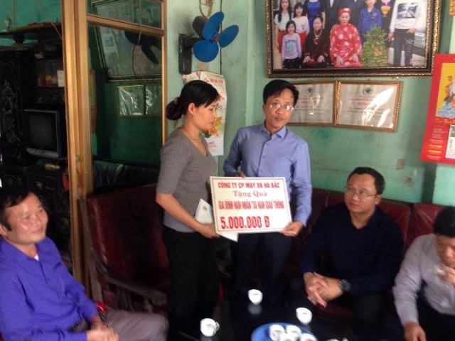 Trao quà cho gia đình có nạn nhân tai nạn giao thông đang công tác tại công ty